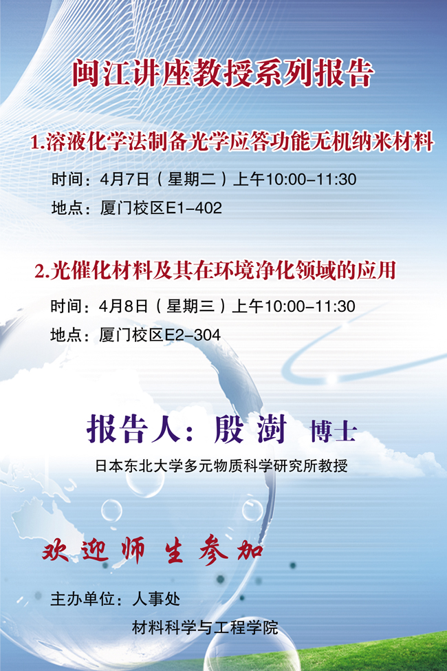 预告:闽江讲座教授系列报告