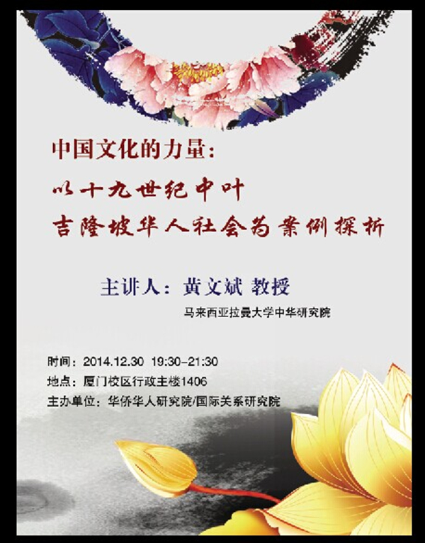 预告:黄文斌教授《中国文化的力量:以十九世纪中叶吉隆坡华人社会为案例探析》