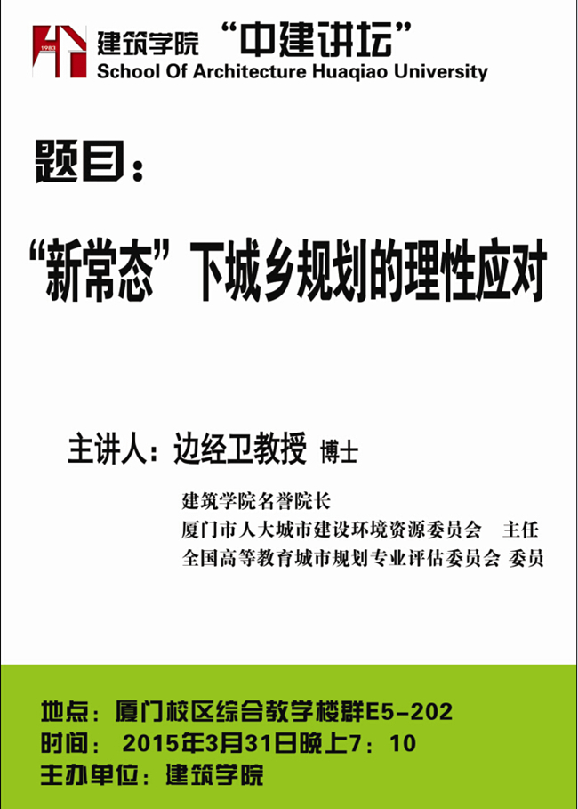 预告:中建讲坛《“新常态”下城乡规划的理性应对》