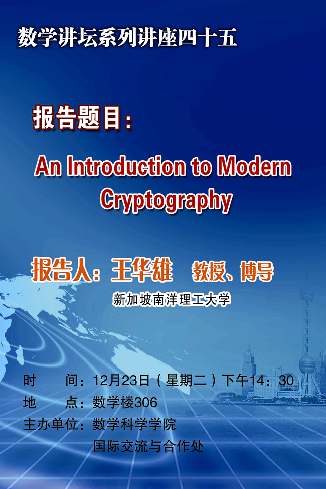 预告:数学讲坛系列讲座第四十五讲