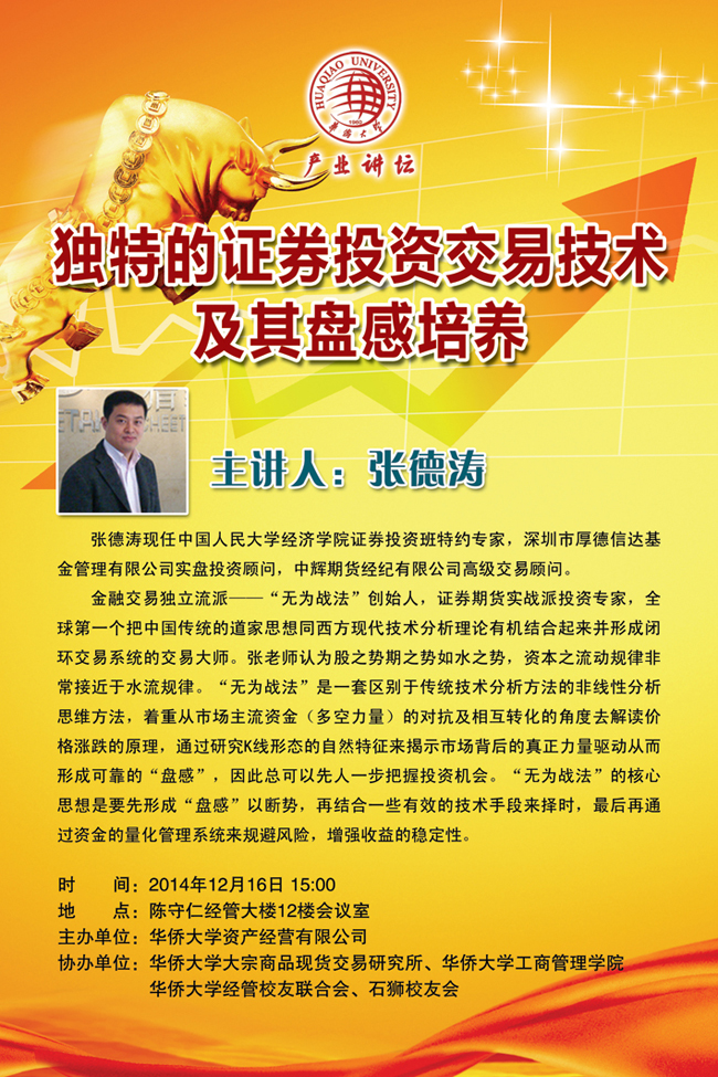 预告:张德涛《独特的证券投资交易技术及其盘感培养》