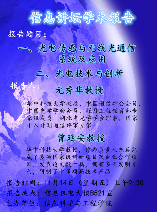 预告:信息讲坛学术报告