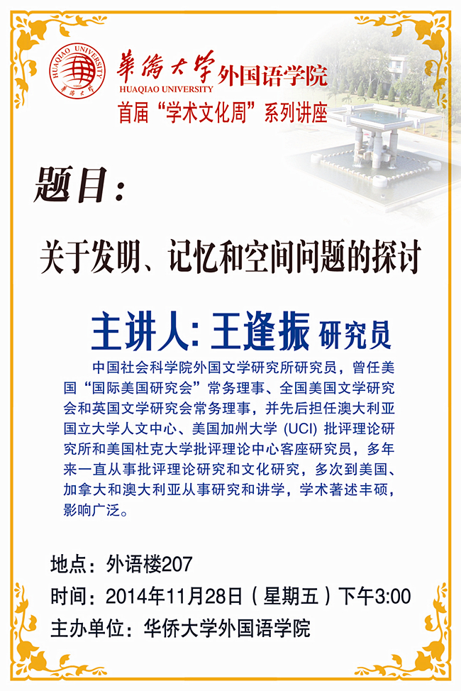 预告:中国社科院王逢振研究员《关于发明、记忆和空间问题的探讨》
