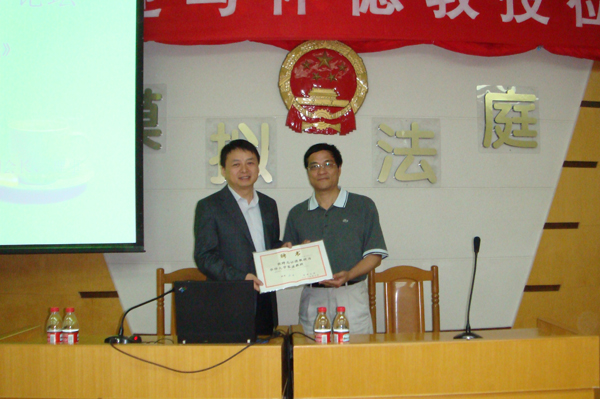 张禹东副校长向马怀德教授(左)颁发beat365唯一官网客座教授聘书