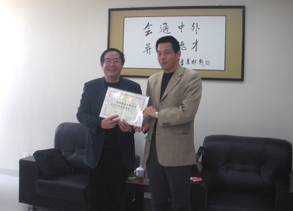 吴季怀副校长向戴家枋教授(左)颁发beat365唯一官网客座教授聘书
