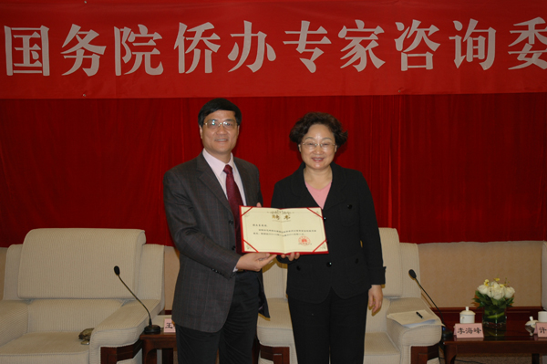 十日晚的聘任仪式在国务院侨办举行。国务院侨办副主任许又声宣读第三届专家咨询委员会聘任决定。国务院侨办主任李海峰向委员逐一颁发聘书。