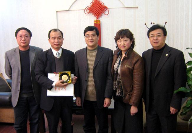 张禹东副校长与洪春棋处长(左二)、沈宏副主任(右二)合影