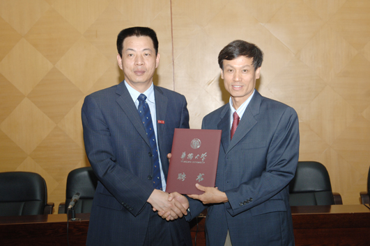 吴季怀副校长为陈充林(右)颁发客座教授聘书。