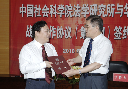 据了解,自 2007 年 6 月签订第一期战略合作协议以来,中国社科院法学研究所充分利用其科研力量和学术资源,积极指导、帮助华大法学院开展各项工作,并推荐王敏远教授出任法学院院长。在王敏远院长的带领下,在大家的共同努力下,法学院革故扬新,奋力进取,进一步理清办学思路,明确发展目标;不断深化教育教学改革,教学质量成效明显;研究生工作机制逐步完善,研究生培养工作渐入佳境;教学、科研、师资、学科建设、人才培养等各项工作都取得了突破性进展,创造了喜人的局面。近两年来,法学院教师在《中国法学》等法学核心期刊刊登或收到用稿通知单的论文已超过 10 篇,出版专著 10 多本,获得国家社科规划青年课题立项 1 项,中国法学会课题立项 1 项,省(部)级课题 11 项; 2009 年大三本科生( 2006 级本科生)通过司法考试的有 82 人,司法考试通过率达到 46% ,创下历史之最。