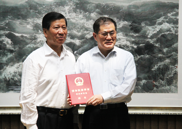聘任仪式18日在京举行。国务院参事室党组书记、主任陈进玉为丘进校长颁发了特约研究员聘书。