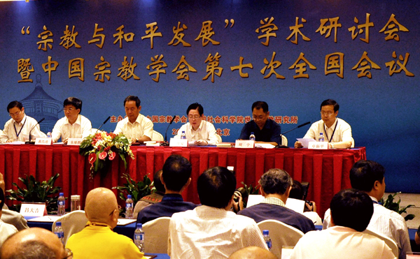 此次会议以“宗教与和平发展”为主题,与会百余位专家学者围绕这一主题并就宗教与社会和谐、宗教与文化、宗教与和平、宗教学相关研究等方面进行了深入探讨和交流。副校长张禹东教授和哲社学院副院长黄海德教授分别提交了《海外华人传统宗教信仰与社会和谐》、《道家“天人观”与道教“太平观”》的学术论文,张禹东并在学会的专题研讨会上作了有关华侨华人宗教现状的主题发言,获得与会领导和学者的关注与重视。