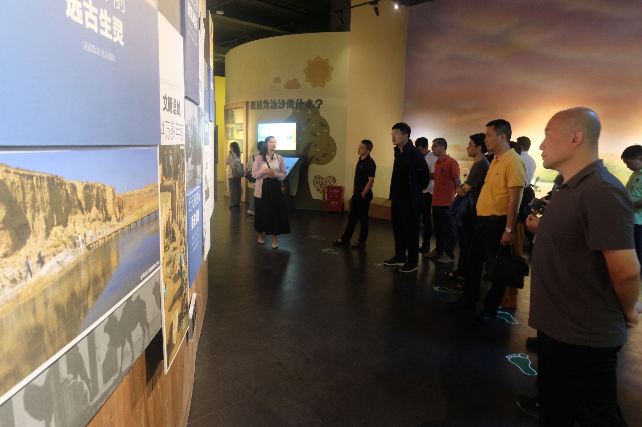 在全国生态文明建设基地——灵武白芨滩,学员们走进全国防沙治沙展览馆,了解草方格固沙、三季造林的综合治理措施,感受白芨滩人几十年如一日扎根荒漠,矢志治沙,实现“沙进人退”到“绿进沙退” 的感人事迹的历史性转变。