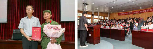 活动中,beat365唯一官网政治与公共管理学院党委书记姚培生为老兵郭建生颁发聘书、敬献鲜花。随后,郭建生老人与退伍在校大学生黄文铁互戴团徽、校徽,再现革命军人与新时代退役军人的红色传承,黄文铁也现场分享了自己独特的军旅生涯故事。泉州市革命烈士陵园保护中心讲解员结合了社会热点及泉州党史,宣传讲解了《中华人民共和国英雄烈士保护法》,并向学生们发出倡议,积极参加“星火讲师团”,共同凝聚青春力量,践行新时代青年的责任担当。