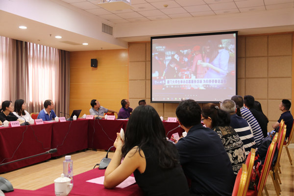 “归根情”服务队指导老师宋宸仪从开展“归根情老侨说”系列主题教育活动、开展“情暖归侨”系列主题实践活动、开设“服务学习”通识教育课程、开展“侨青公益领袖筑梦”系列培训四个方面汇报了服务队在市侨联及校团委指导下建设发展的成果,并提出在市侨联及社区支持下加强基地联合建设、拓展侨青公益领袖计划、创新服务内容和形式、建立社区驿站四点建议。